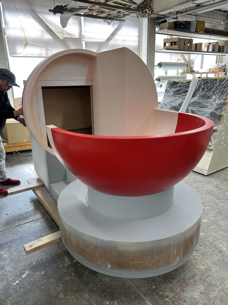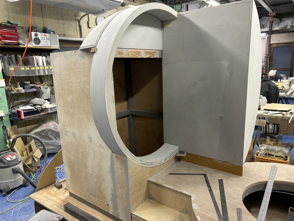 都内博物館宇宙船什器製作中、打ち合わせ中